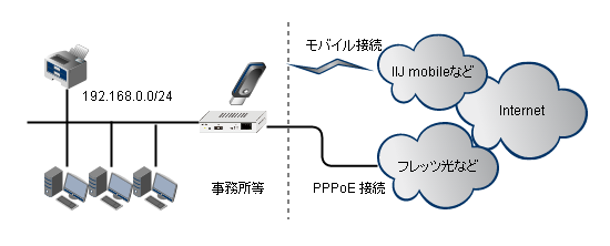 今回のリリースでは IIJ mobile が提供するUSBモバイルデータ通信端末 UX312NC での安定性を向上させました。本記事では、SEILにUSBモバイルデータ端末を接続し、PPPoE回線をバックアップする構成について解説します。