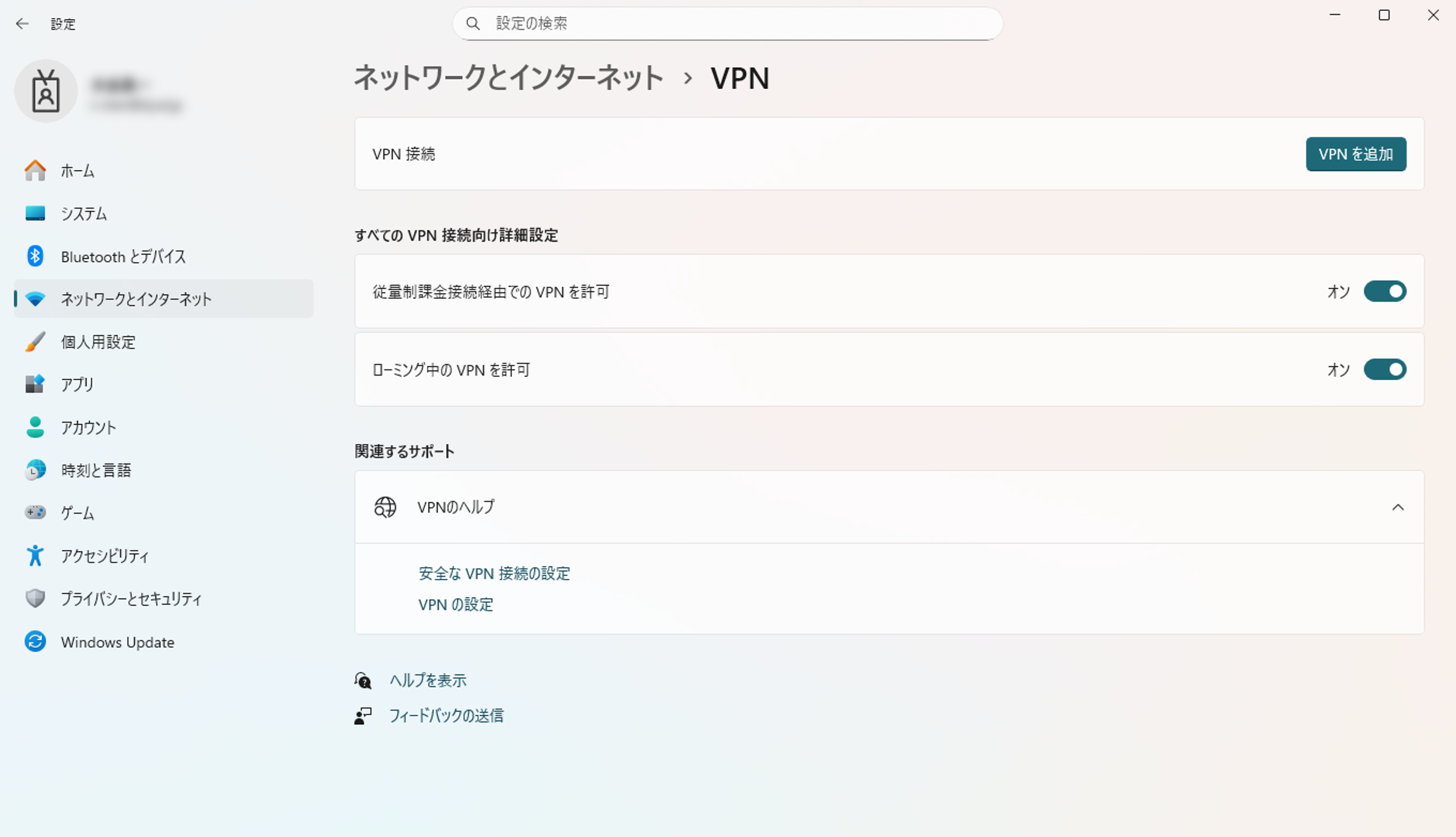- 「その他のVPN設定」をクリックする